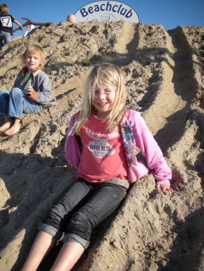 het strand geweest en heb ik glijbaantjes gemaakt van een