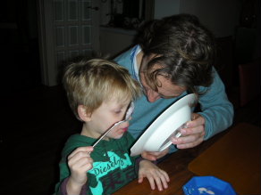 bij het ontbijt hebben Oby en Thygo mama nog even gedold met een
