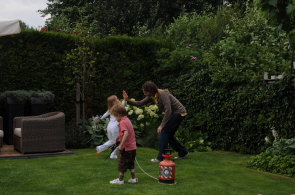 de dag er voor kunstgras om de zandbak aangelegd en het huis zag